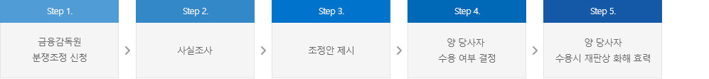 분쟁조정이란?당사자의 신청에 기초하여 주장내용과 사실관계를 확인하고 이에 대해 합리적 분쟁해결 방안이나 의견을 제시함으로써 당사자 간 합의에 따른 원만한 분쟁 해결을 도모하는 제도예요.